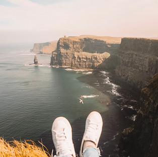 Arrive at the Cliffs of Moher: I still get chills thinking about this breathtaking place! The picture above was taken with my boyfriend's drone! You basically get to walk on the edge of these cliffs. Literally every where you turn and every couple feet you walk down was another epic view. I can't stress enough how beautiful this place was. It gets a bit rainy and windy in April so we really lucked out on the weather and got tons of sun. Make sure to pack a light jacket because it does get windy there!